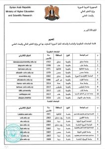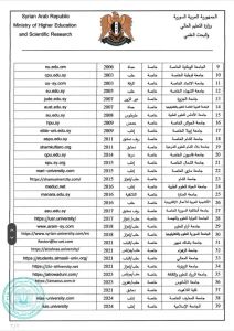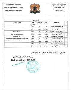 - الجامعات المعترف بها لدى وزارة التعليم العالي والبحث العلمي